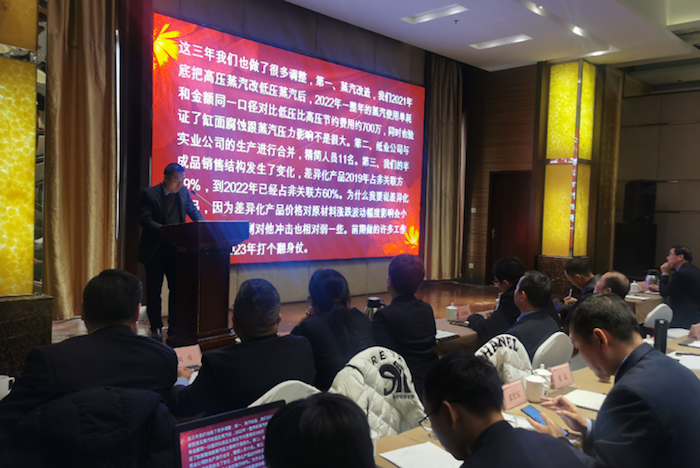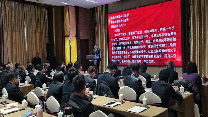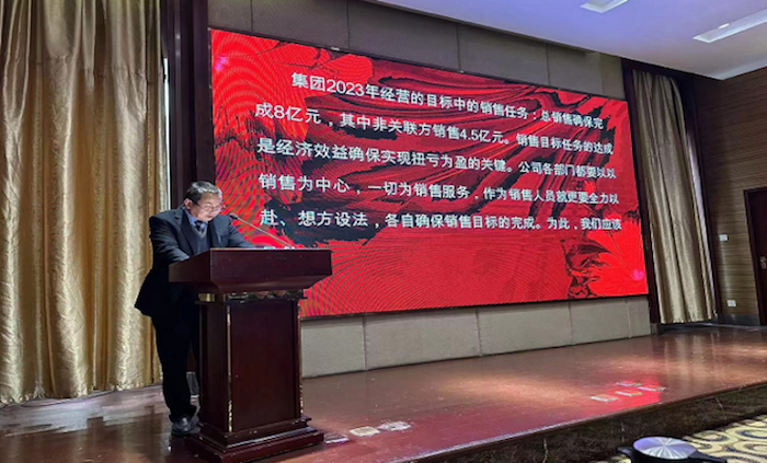 集團副總經(jīng)理董國昌作動員報告。2023年,集團總銷售目標(biāo)8億元。
